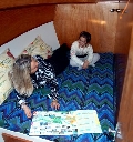 Maksymalnie 6 miejsc do spania, na rufie dwie kabiny z podwójnymi kojami, w salonie rozkładana dwuosobowa koja. Dwie toalety, jedna z łazienką.
