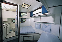 Kabina w części rufowej i dziobowej (z trzema kojami), nadaje się dla dwóch par i rodzin, dwie kabiny prysznicowe (w części dziobowej kabina z łazienką).