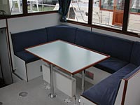 Nowoczesna barka budowana w stylu tradycyjnym, salon i stanowisko sternika podwyższone na śródokręciu, drugie stanowisko sternika na pokładzie przeznaczonym do opalania, dziobowy ster strumieniowy, obszerna platforma kąpielowa z drabinką i prysznicem z ciepłą i zimną wodą, podłączenie do prądu na lądzie, ogrzewanie wody, druga lodówka w salonie, zbiornik na ścieki 1500 l (tylko w NIemczech).